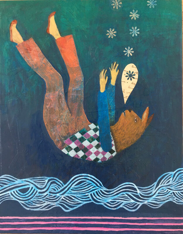 After several years in Boston, Libby headed West again to settle down in Washington state with her family (Libby is married to author Matthew J. Sullivan) and began working as an academic librarian. At this time, Libby’s artwork evolved in a more narrative direction. She began developing an entirely new way of combining the elements of collage and painting together in small-scale works.  Using her own unique method to create her images, Libby seeks to engage the viewer in a mysterious, whimsical world that is full of more questions than answers.